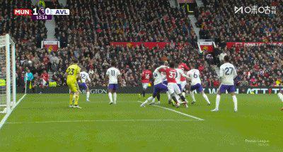 第64分钟,维拉角球,曼联解围不远,客队形成连续进攻之势,最终由巴克利禁区内重炮破网。随后VAR介入,确认站在越位位置的阿马杜·奥纳纳没有碰到皮球,进球有效,1比1。